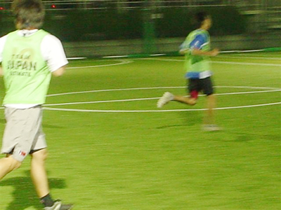 軽く体操をした後、簡単なドリルを行い、最後は男女ミックスでのゲームを行った。