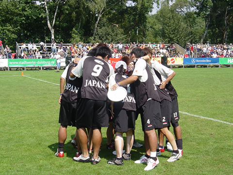 また、予選に関しては初戦のアメリカに大差で敗れたことにしてもメンバーの調子は悪くなかった。調子のいい自分自身に、チームプレーではなく全員が勝手にプレーしてしまった。初戦に対してのプレッシャーに負けていたのであろう。テンションは上がっていたが冷静ににプレーが出来ていなかった。アメリカ他外国のチームはとにかくプレッシャーに強い。それは高いレベルの均衡した国内大会を勝ち抜いてきた自信であろう。国内においてもっとプレッシャーのかかる試合、レベルの高い試合を目指し練習に取り組まなくてはならないとあらためて感じました。日本のトッププレイヤーのスピードや技術の部分は十分に通用する。ただしオーストラリアや他の国のレベルも上がっている。学生プレイヤーや若手プレイヤーには是非高いレベル(世界)のアルティメットを目指して欲しいと思う。 表彰式をスタンドから見ているのは本当に悔しかった。次回の代表メンバーに期待したいと思う。